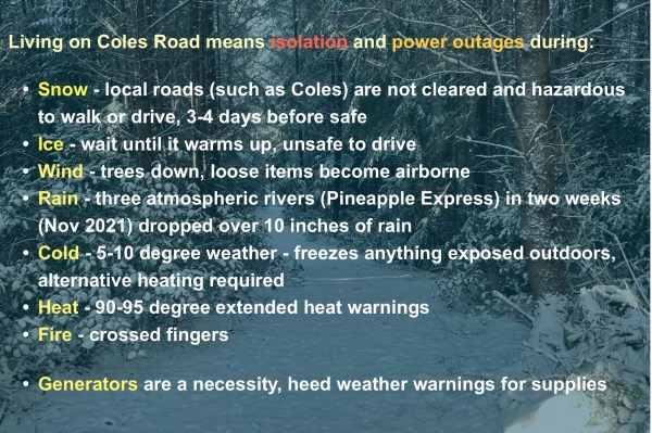 Island Transit may take Coles Road residents to the nearest transit stop (Langley or Bayview). The bus system provides limited routes, limited times and limited island stops. There is no transportation service available to rural 98260.