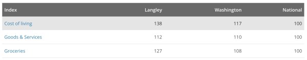 It is expensive to buy groceries, eat at restaurants or buy retail items in Langley. Most 98260 residences shop at The Goose, Payless, or Red Apple. Vehicles are required to live on Coles Road. It’s dangerous to walk or ride bicycles on Coles Road. There is no shoulder.