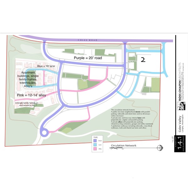 8-24-22 Developer description of CV PUD. “The Property can be accessed by automobile only from Coles Road, which has no curbs, gutter, or sidewalks along most of its length. Construction of a sidewalk along Coles Road is complicated by critical areas (both steep slopes and wetland areas existing immediately along the shoulder of the road)”.